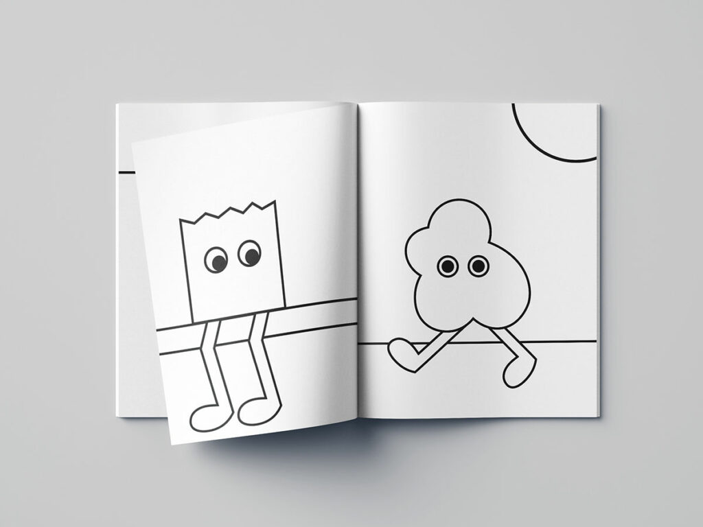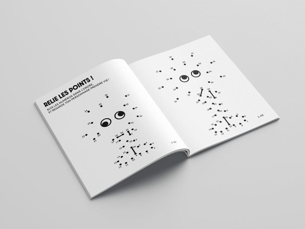 Les visuels sont disposés de manière libre et volontairement imparfaite, comme des autocollants collés spontanément par des enfants. Cette composition dynamique traduit l’exploration sensorielle et renforce le caractère ludique, interactif et joyeux de l’événement.